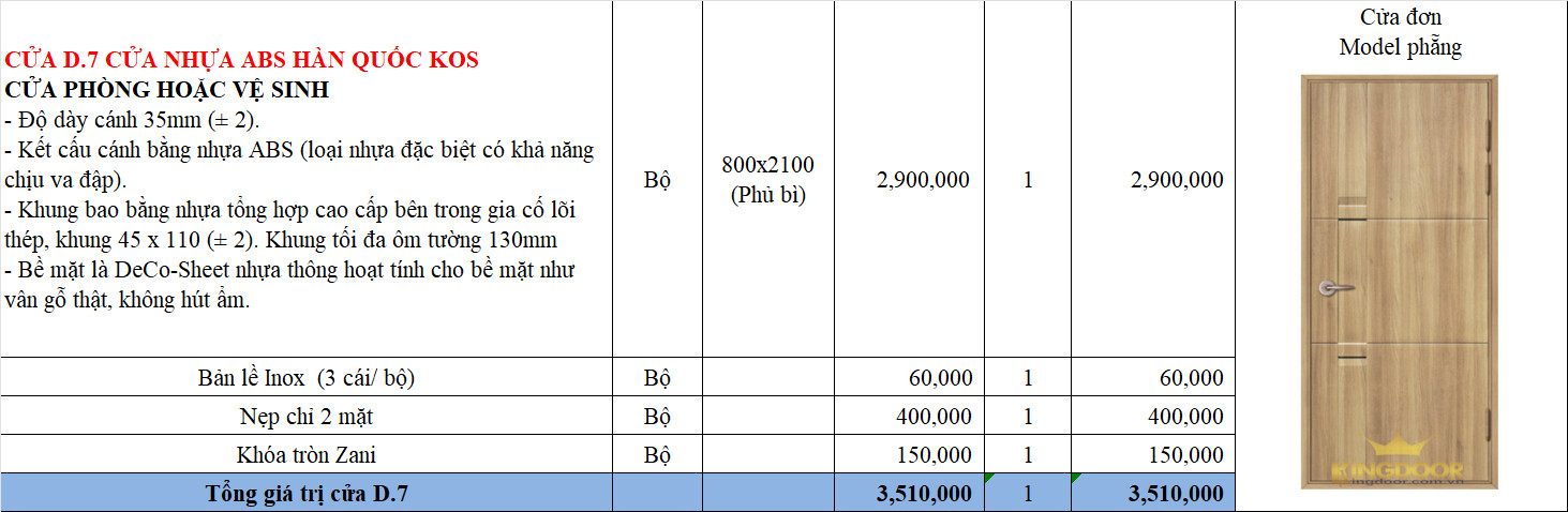 Ngoài cửa nhựa ABS Hàn Quốc, công ty Kingdoor còn cung cấp thêm các sản phẩm khác như: