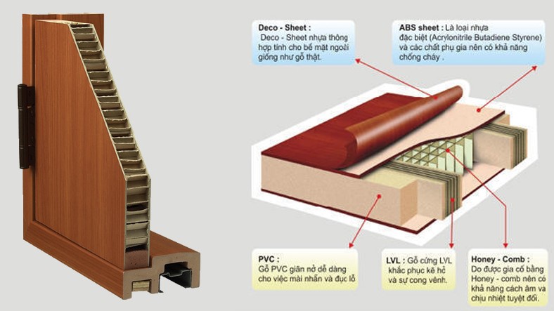 Với sự kết hợp hoàn hảo của 5 lớp trên đã tạo ra loại cửa nhựa cao cấp ABS Hàn Quốc chắc chắn, không cong vênh, cách âm, cách nhiệt tốt và đặc biệt có sắc thái bên ngoài giống như gỗ thật hơn bất cứ loại cửa nào.