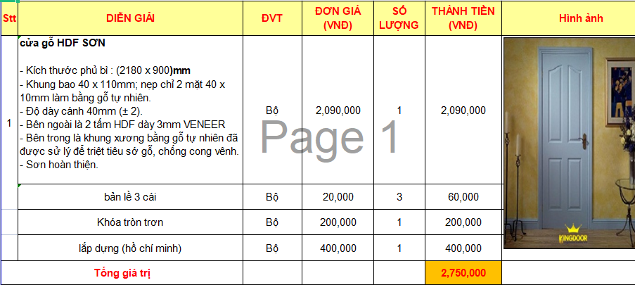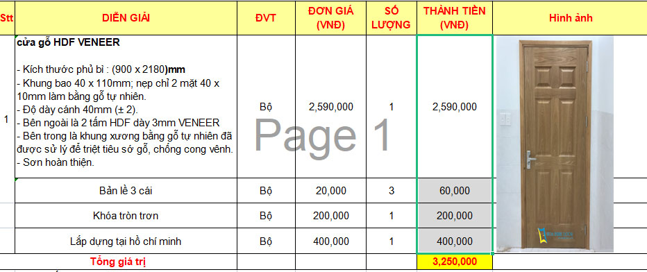 * Lưu ý phần báo giá cửa gỗ công nghiệp HDF trên:
