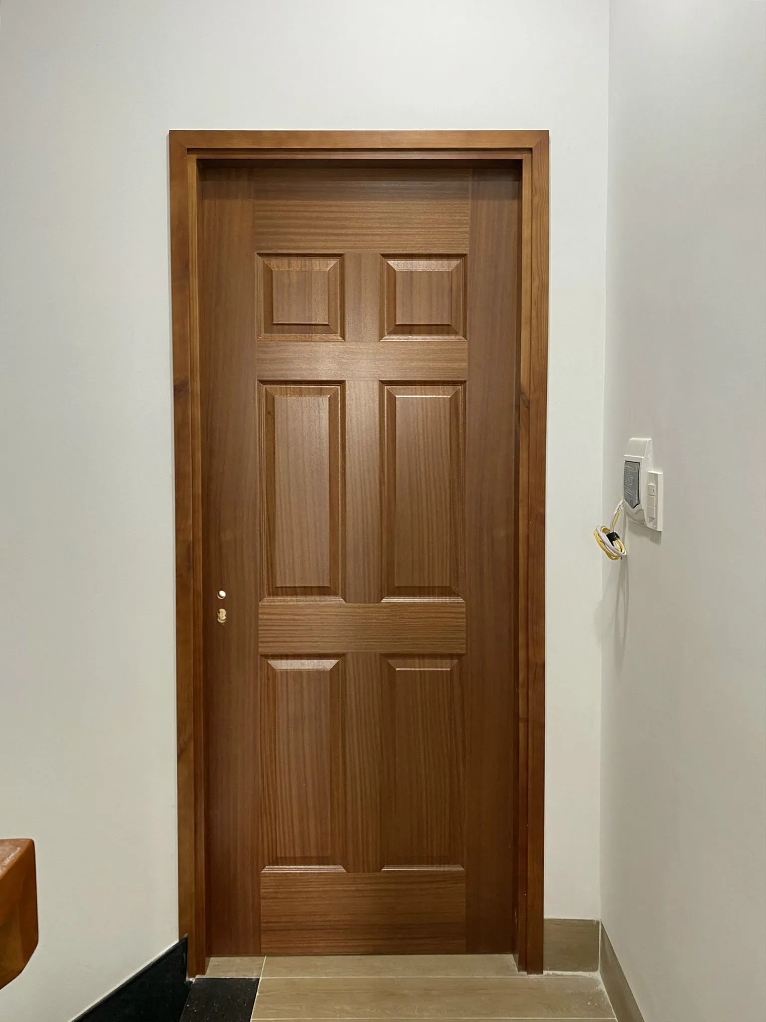 - Bên ngoài là 2 tấm HDF phủ Veneer hoặc sơn và bên trong là khung xương bằng gỗ tự nhiên đã được xử lý để triệt tiêu sớ gỗ để chống cong vênh.