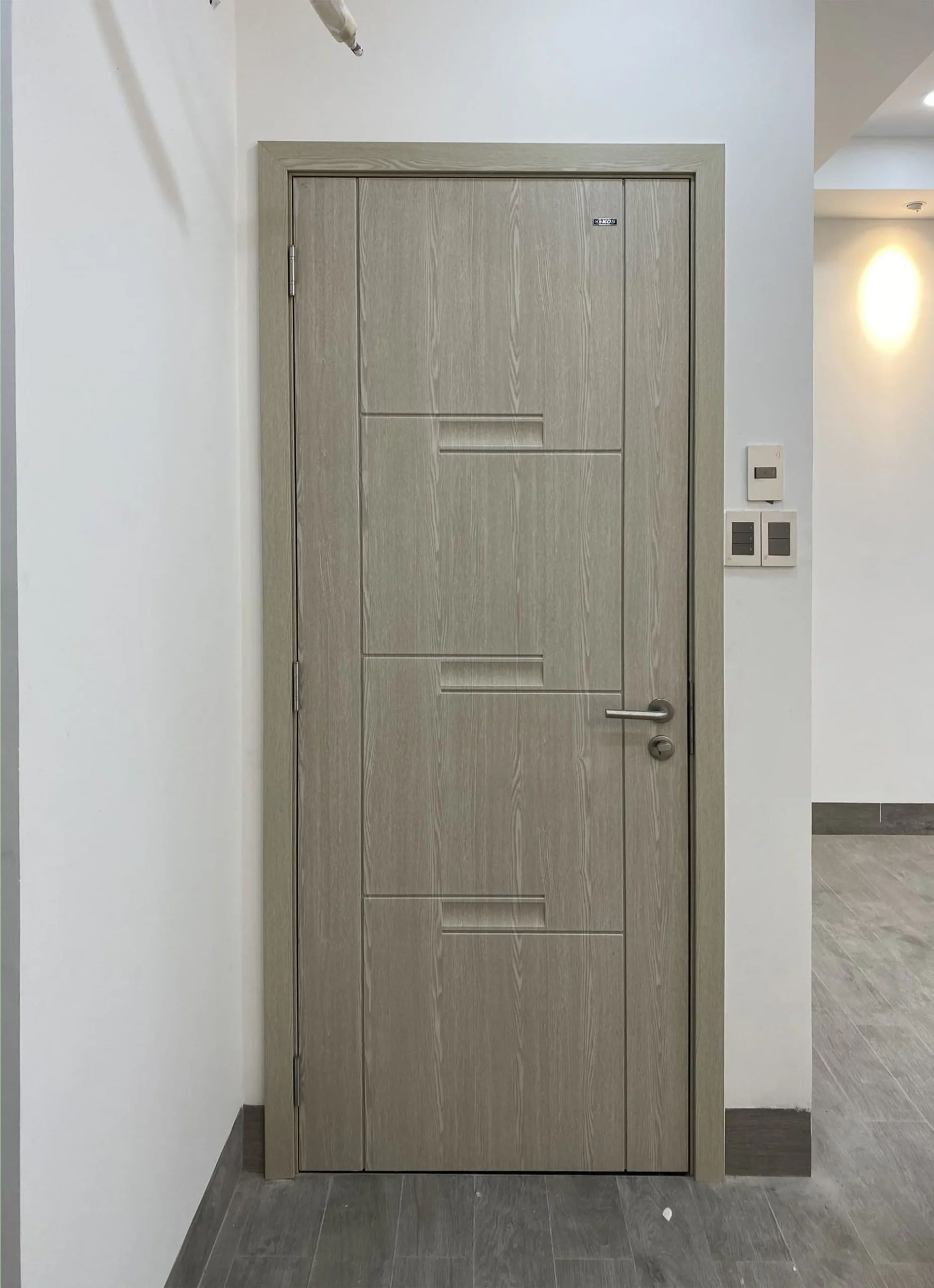 — Lớp giữa có gỗ PVC giãn nở được ép xung quanh để tạo độ vững chắc cho cửa.