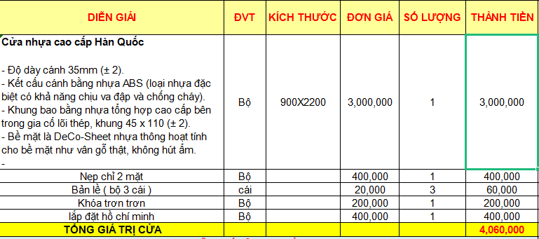 III. Giá cửa nhựa ABS Hàn Quốc tại quận 2