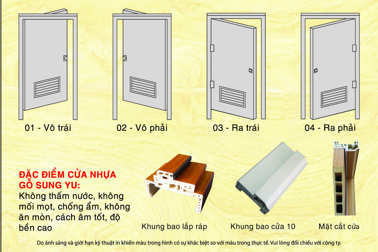 – Quý khách không cần phải lau chùi thường xuyên hay phải sơn lại như cửa gỗ thông thường. Chúng sẽ tồn tại bền màu trong nhiều thập kỷ và vô cùng ít bám bụi.