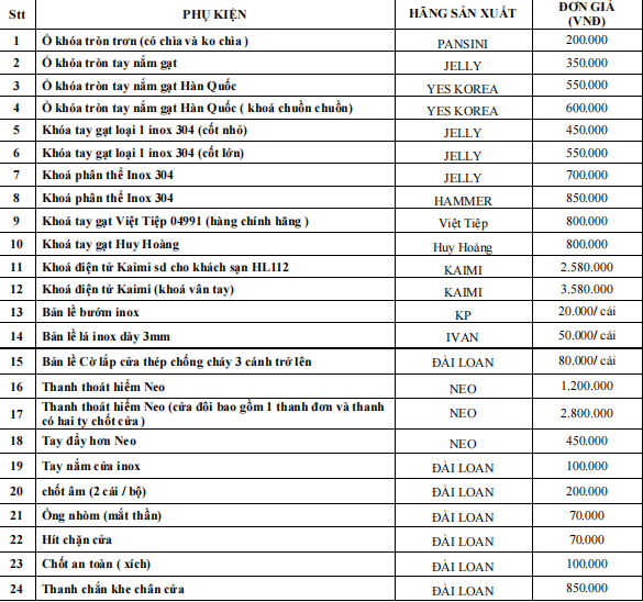 – Bản lề : 1 cái : 20.000 -> 1 bộ gồm 3 cái : 60.000