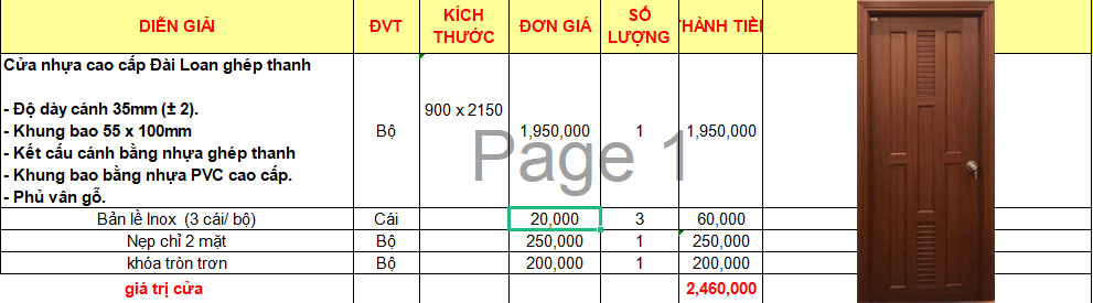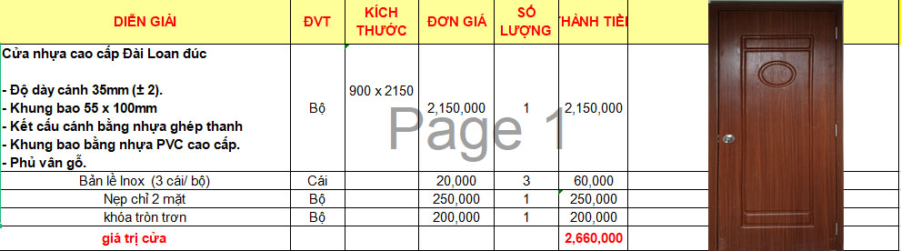 Quy cách cửa nhựa đài loan
