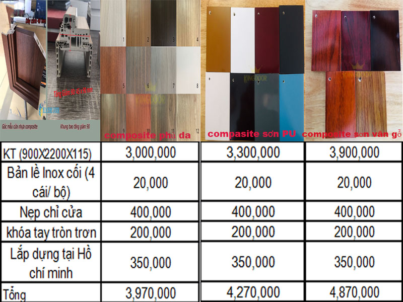 - Cửa nhựa composite phủ da giá 3,000,000 bao gồm cánh và khung bao