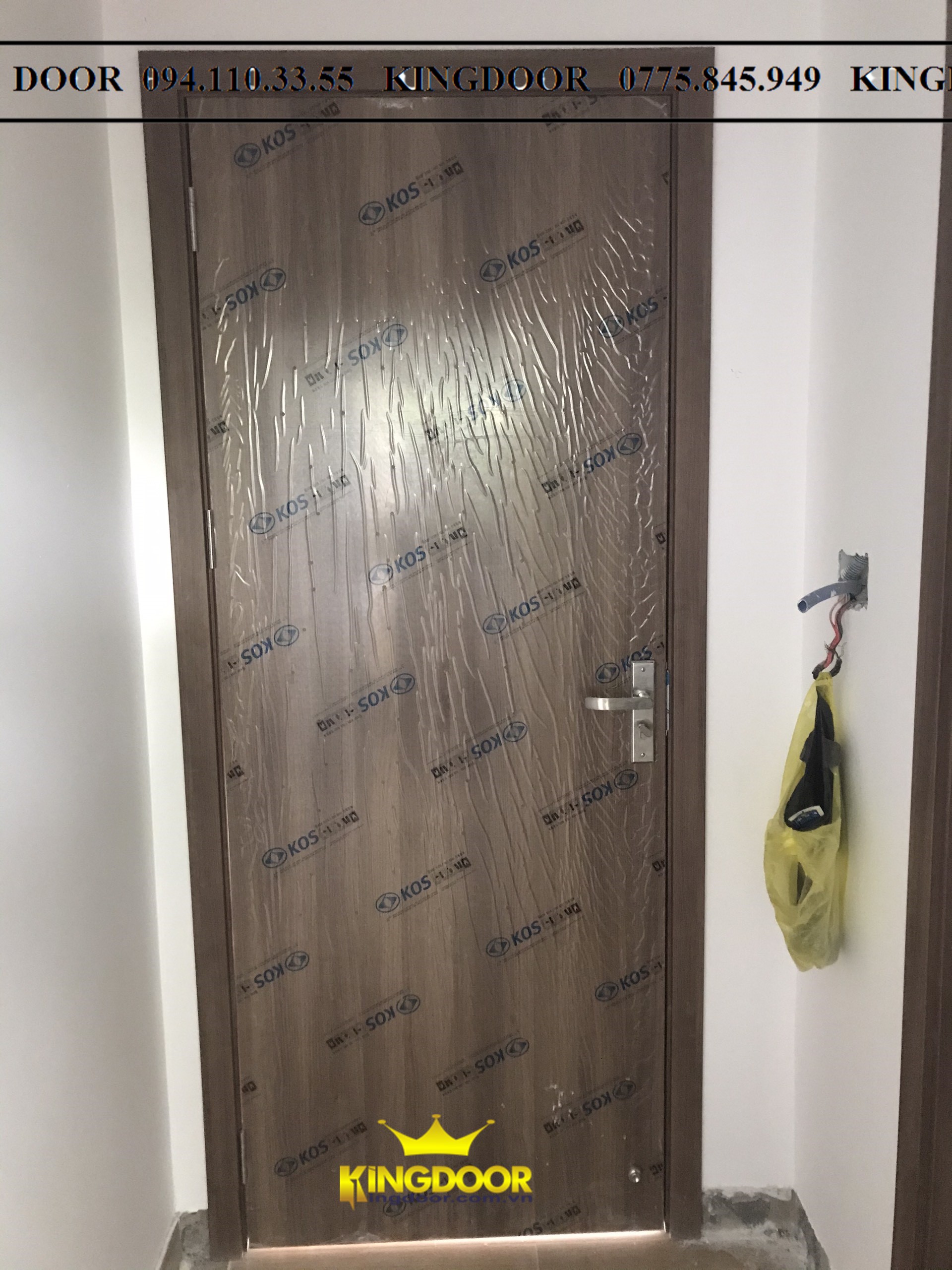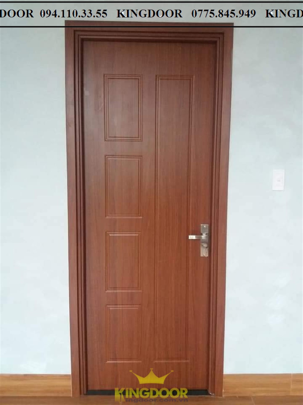 Giá cửa nhựa composite dòng phủ sơn vân gỗ: 3.900.000/ bộ, Kích thước (900 x 2200mm) bao gồm cánh và khung bao.