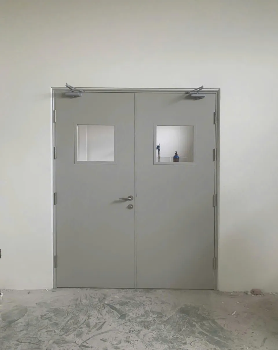 + Phụ kiện đạt chuẩn PCCC: Bản lề, khóa, tay co thủy lực, thanh thoát hiểm… là những phụ kiện đi kèm không thể thiếu khi lắp đặt cửa thép chống cháy. Bên cạnh đó cần có doorsill ngăn khói, ron cao su phải đồng bộ với cửa và có chứng nhận chịu nhiệt.