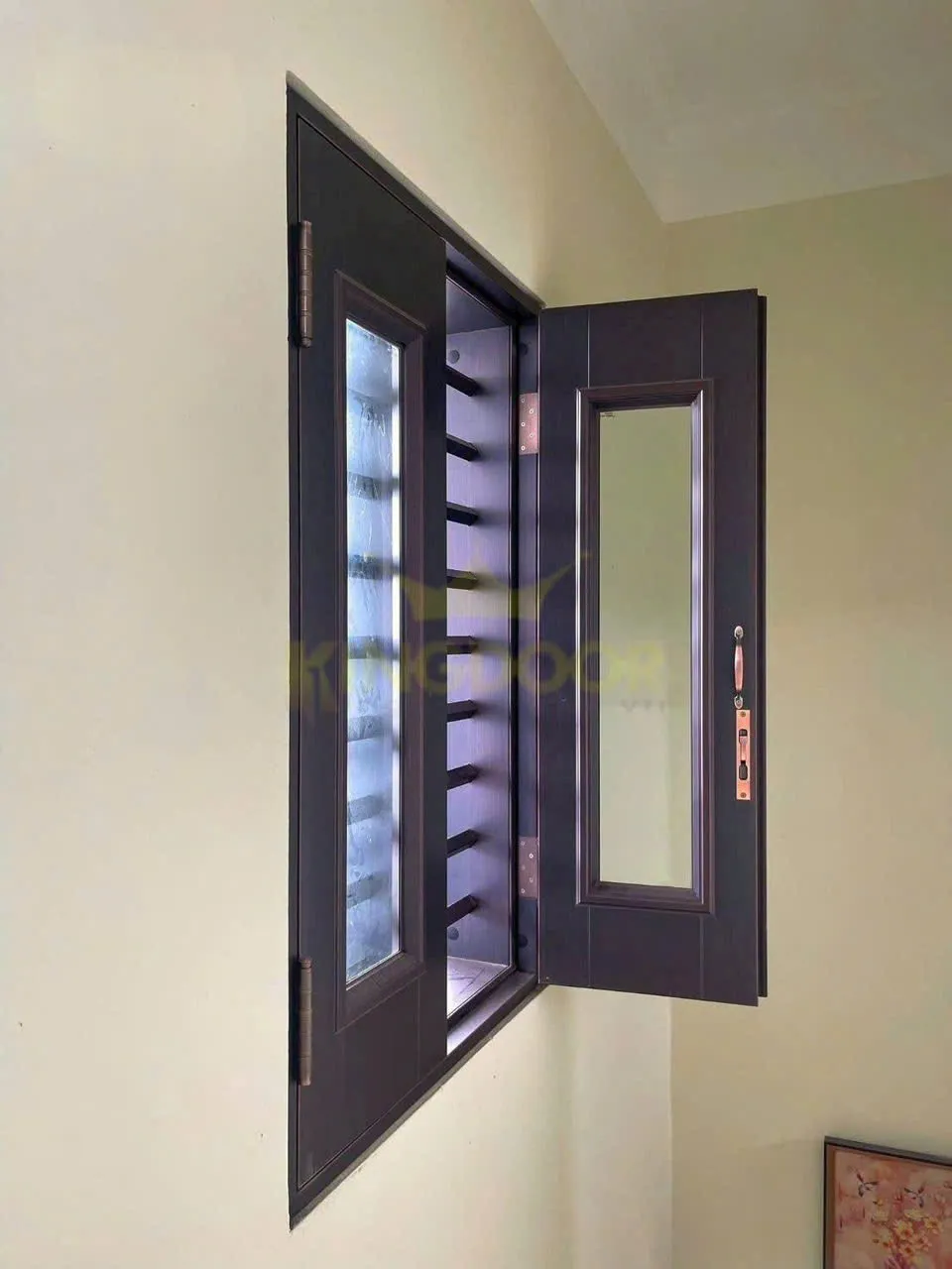 Độ bền vượt trội: Cấu tạo bằng thép mạ kẽm sơn tĩnh điện chống oxy hóa, chống cong vênh, mối mọt – điều mà cửa gỗ truyền thống khó đạt được.