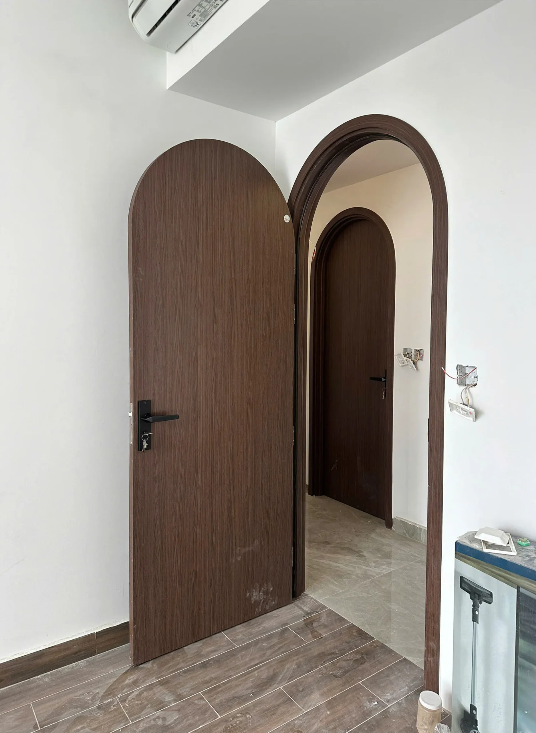 Phần vòm cong mềm mại là điểm nhấn độc đáo, giúp cửa trở nên ấn tượng và đẳng cấp hơn so với cửa thông thường. Đặc biệt phù hợp cho biệt thự, nhà phố cao cấp, căn hộ phong cách tân cổ điển hoặc hiện đại.