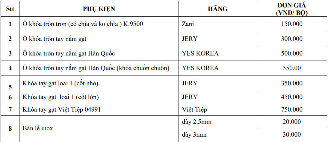2. Phụ kiện đi kèm giá cửa composite tại Thủ Đức