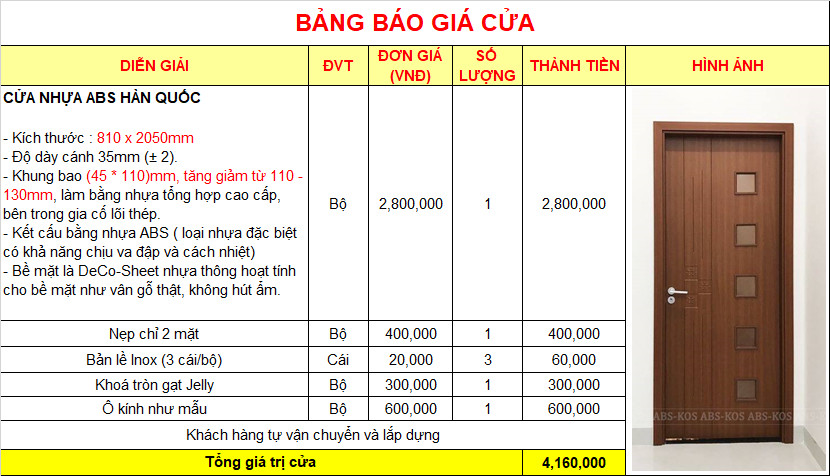 III. Giá cửa nhựa ABS Hàn Quốc tại Cần Thơ