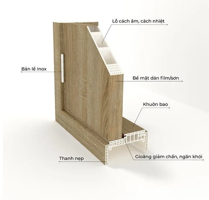 – Phần lớn, cửa nhựa giả gỗ đều được làm từ chất liệu chính là nhựa kết hợp với bột gỗ. Chỉ là cấu tạo và tính năng của mỗi loại sẽ có phần khác nhau.