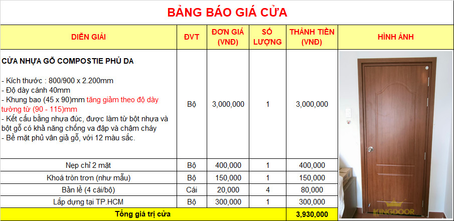 Giá cửa nhựa gỗ Composite tại Quận 5 – Quận 6 – Quận 7 |Kingdoor