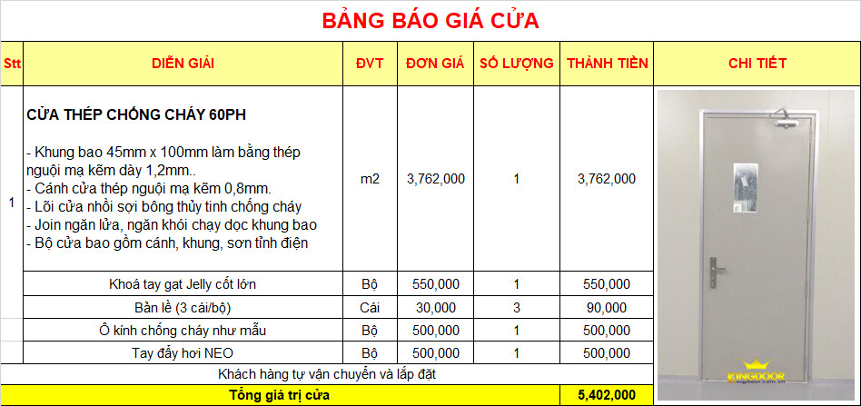 Giá cửa thép chống cháy được tính theo m2 : bao gồm khung bao + cánh + sơn tĩnh điện.