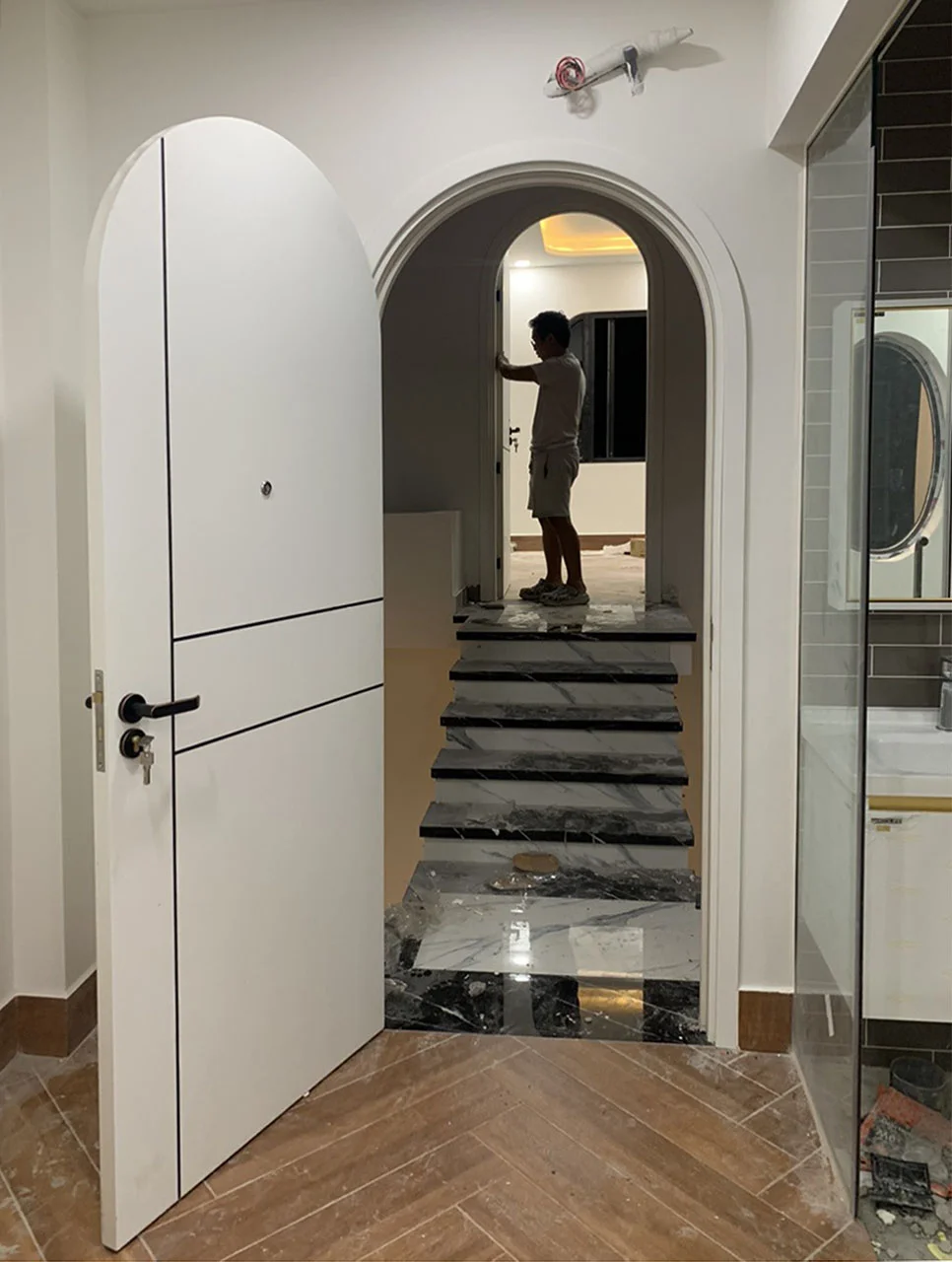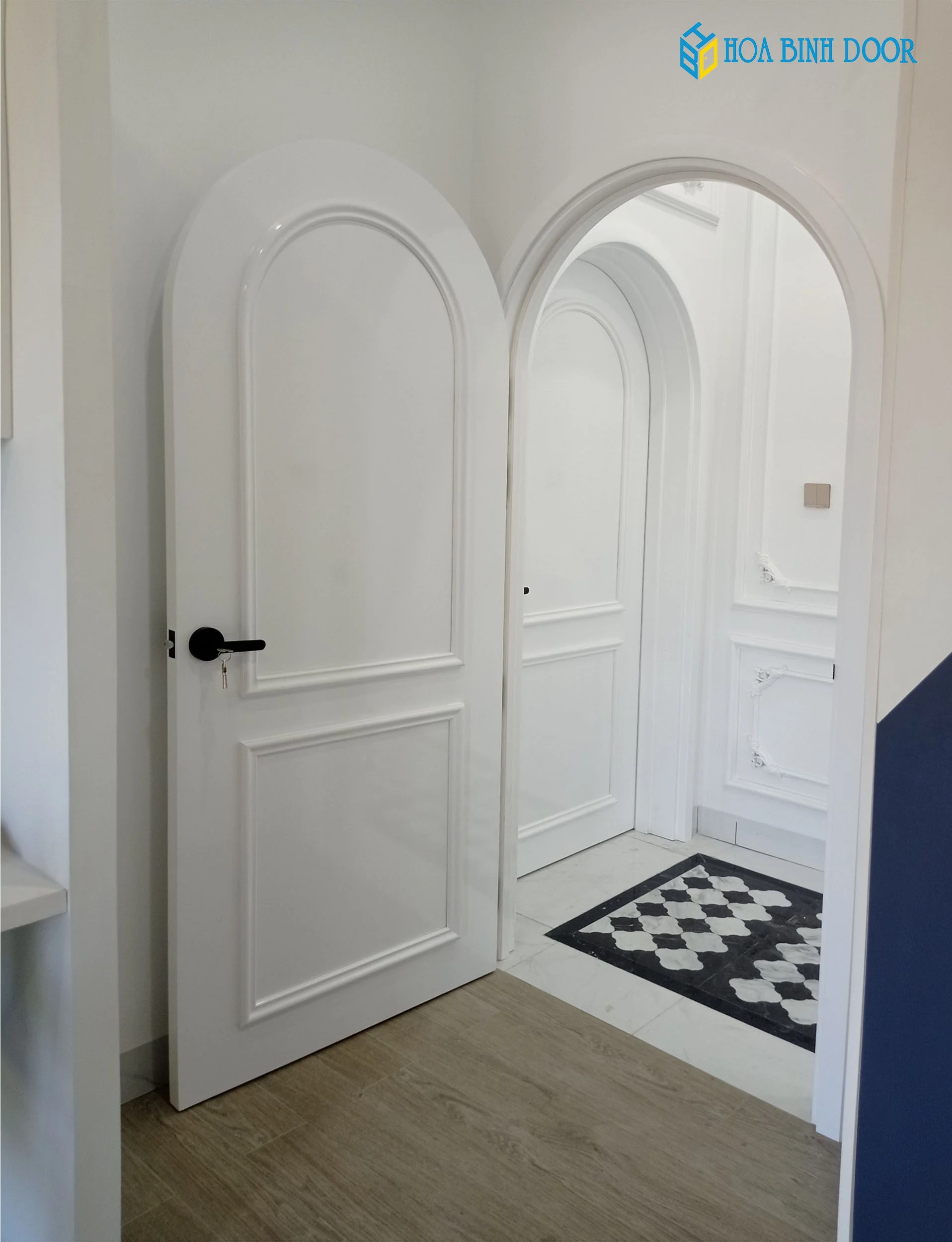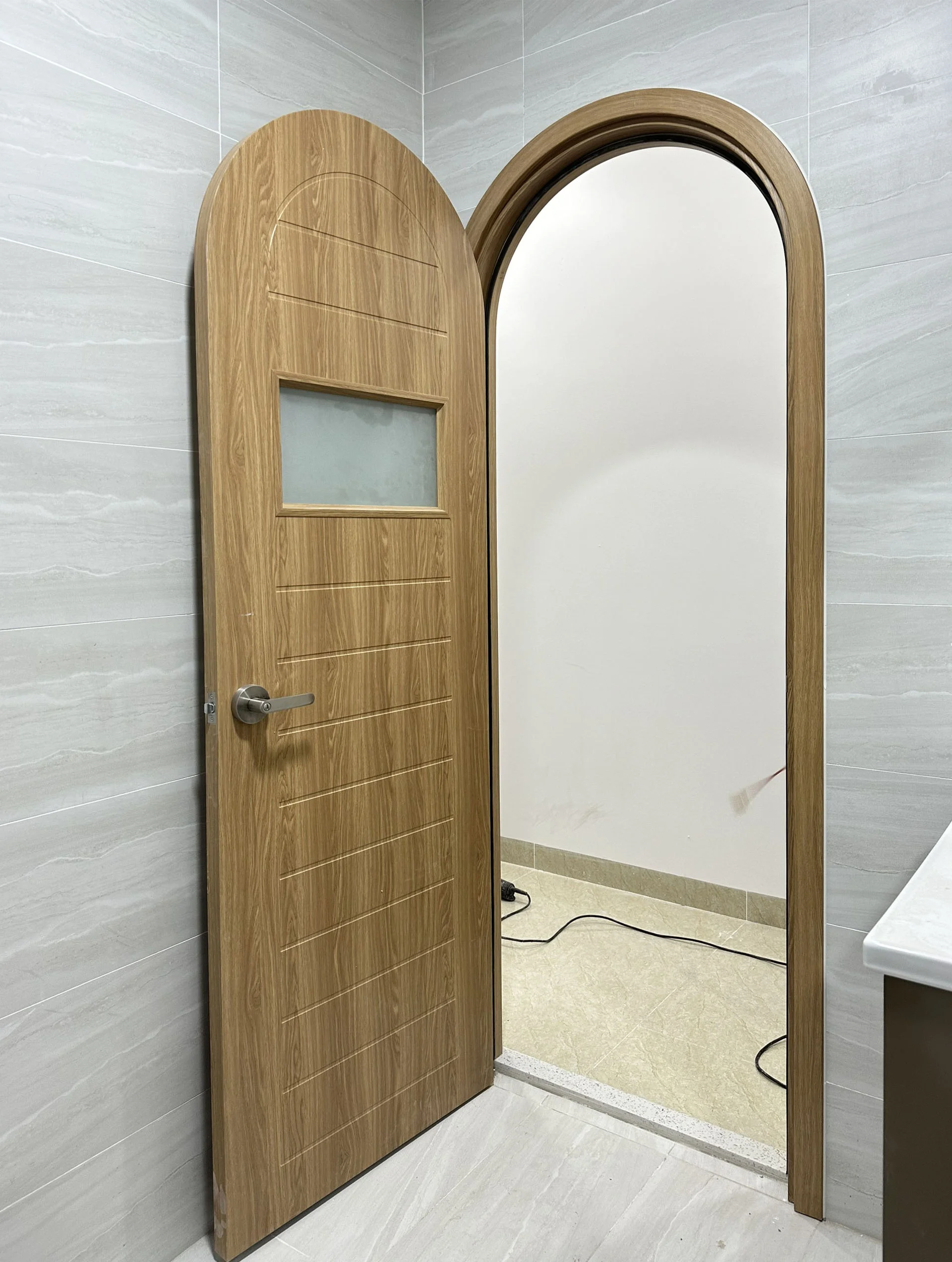 —Tính thẩm mỹ: Cửa vòm nhựa Composite thu hút ánh nhìn bởi đường cong mềm mại và khác biệt so với các mẫu cửa vuông. Với sự đa dạng của bảng màu từ vân gỗ đến màu đơn sắc, giúp phù hợp với mọi không gian.