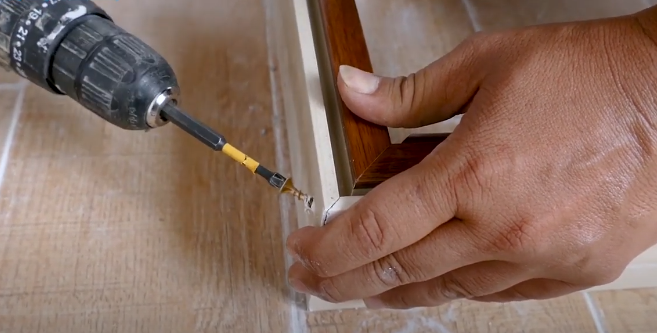 Bước 3: Bắn bản lề, lắp cánh vào khung bao