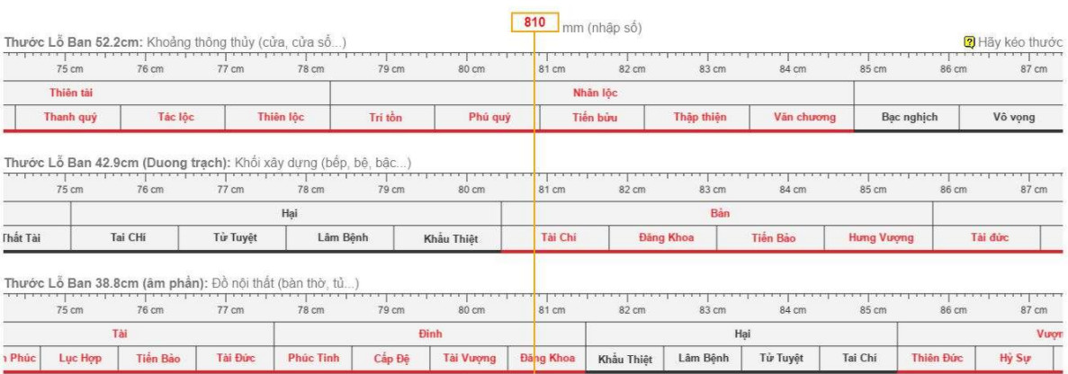Để đo lường hợp phong thủy, dụng cụ cần thiết là thước Lỗ ban. (bạn có thể mua tại các cửa hàng kim khí, vật liệu xây dựng). Thường đo lường cửa, kỹ thuật hay sử dụng thước Lỗ ban loại 52.2cm.