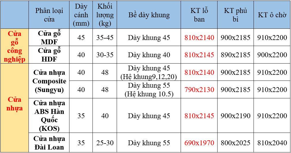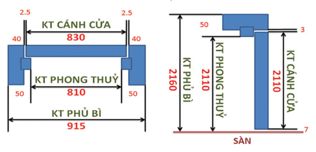 ===> Kích thước phủ bì: Chiều rộng = 810 + 45×2 = 900mm Kích thước cửa đẹp
