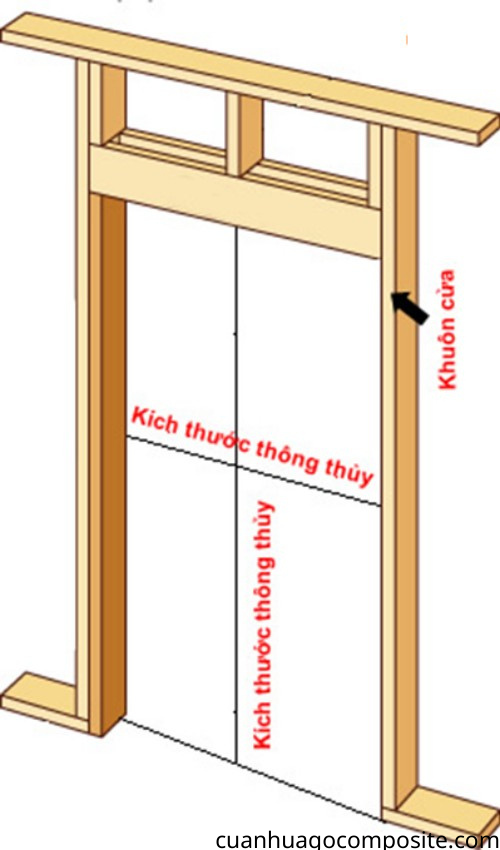 Kích thước thông thủy là khoảng cách giữa hai cạnh đối diện (tức : kích thước sử dụng của bộ cửa đó)
