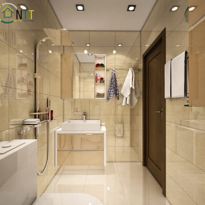 – Không nên lắp cửa nhà vệ sinh đối diện cửa chính, bếp hoặc cầu thang.