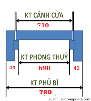 Phủ bì cửa chiều rộng = 690 + ( 45 x 2 ) = 780mm