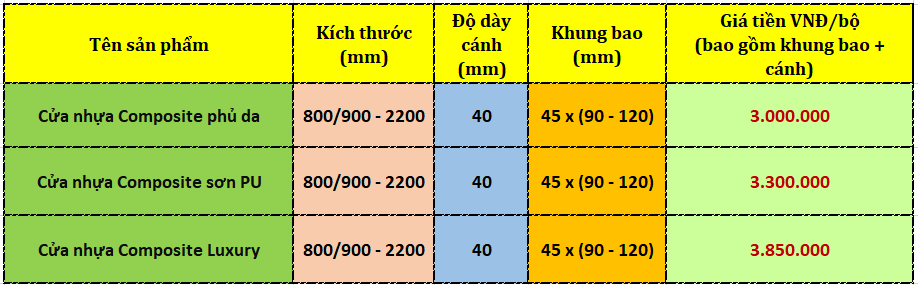 => Giá thành của 1 bộ cửa hoàn thiện bao gồm: khung bao + cánh + nẹp chỉ + bản lề + khóa + công lắp đặt + phí vận chuyển.