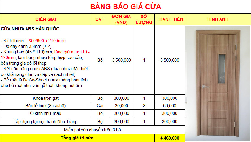 Cửa nhựa giả gỗ ABS Hàn Quốc –